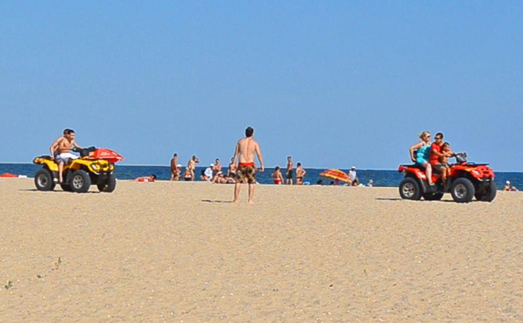 Песчаный. Спуск в море пологий. На пляже расположены различные водные развлечения - прокат скутеров, полеты на парашюте, водные горки. Можно арендовать шезлонги и зонтики. |