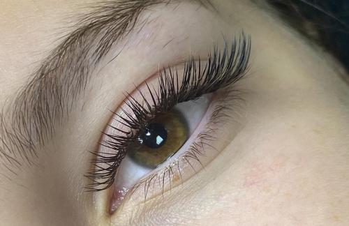 Волоски ресниц и бровей приобретают нужную форму и красивый, стойкий изгиб.