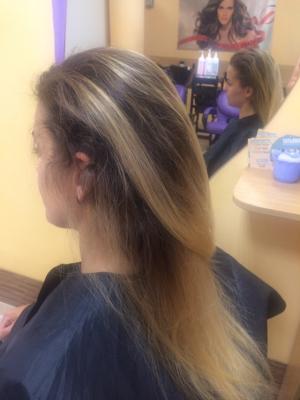 Была на сложном окрашивании у Светланы. Очень довольна результатом!! Однозначно, приду к ней еще. И цена со скидкой очень приемлемая. Спасибо)