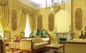 - Применение жидких обоев и лепнины в интерьере смотрите здесь.