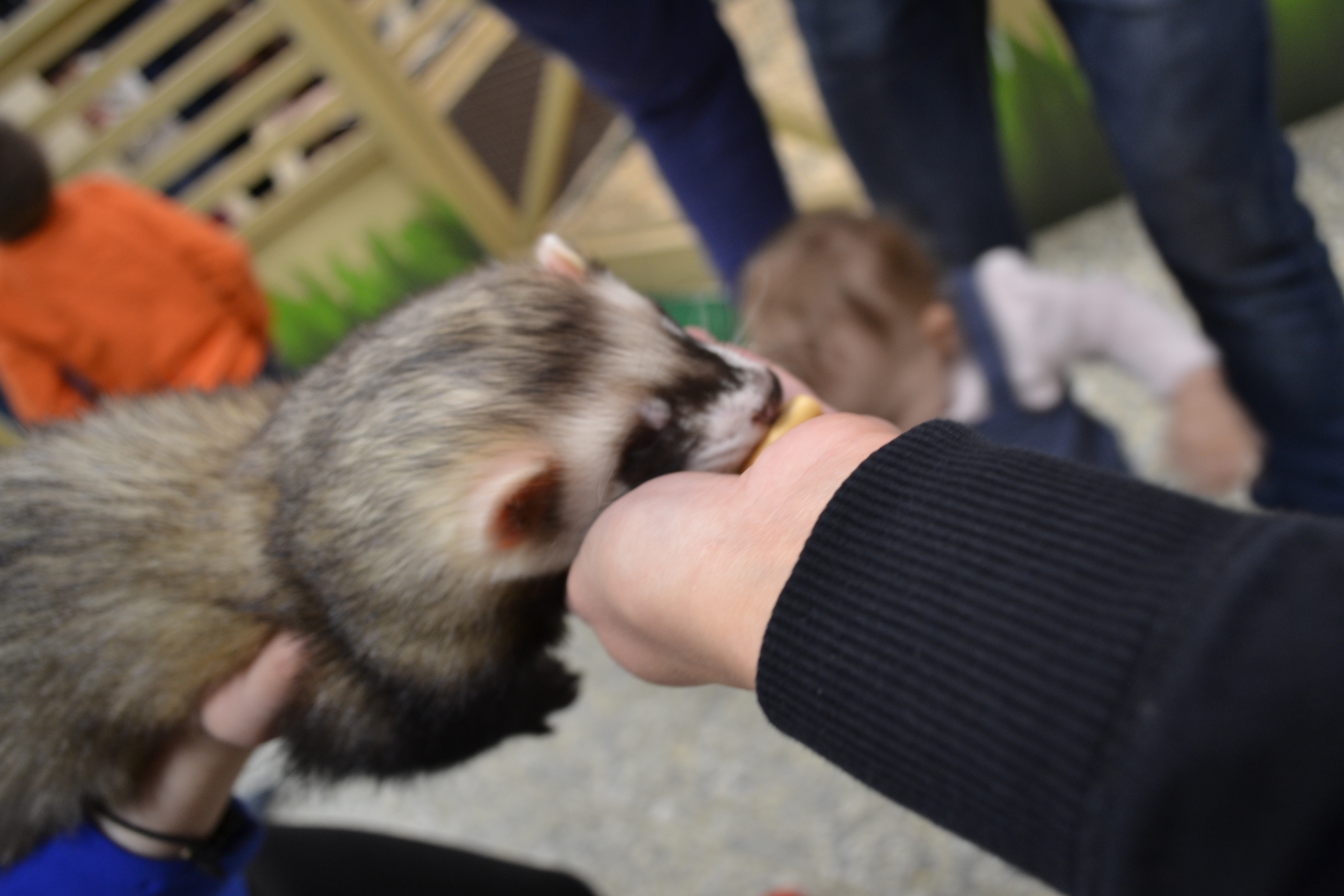 В вольере у коз и лам было нагажено, мы хоть и зашли туда, но приятно не было. Кролики и зайцы-супер, дети там в основном и просидели,но опять таки Просто весь пол в какашках так,что просто свободного места нет. У меня номерок упал и естественно в самое оно)) детям очень хотелось к зайкам,сесть на коленки радом, гладить,так как на руки их брать нельзя,а я все не разрешала...впрочем это не помогло)) уехали все равно в штанах,испачканными какашками. Лисы и ежики спали. К носухам нас не пустили,сказали,что у них брачный период. Хорек и еноты были общительными))
