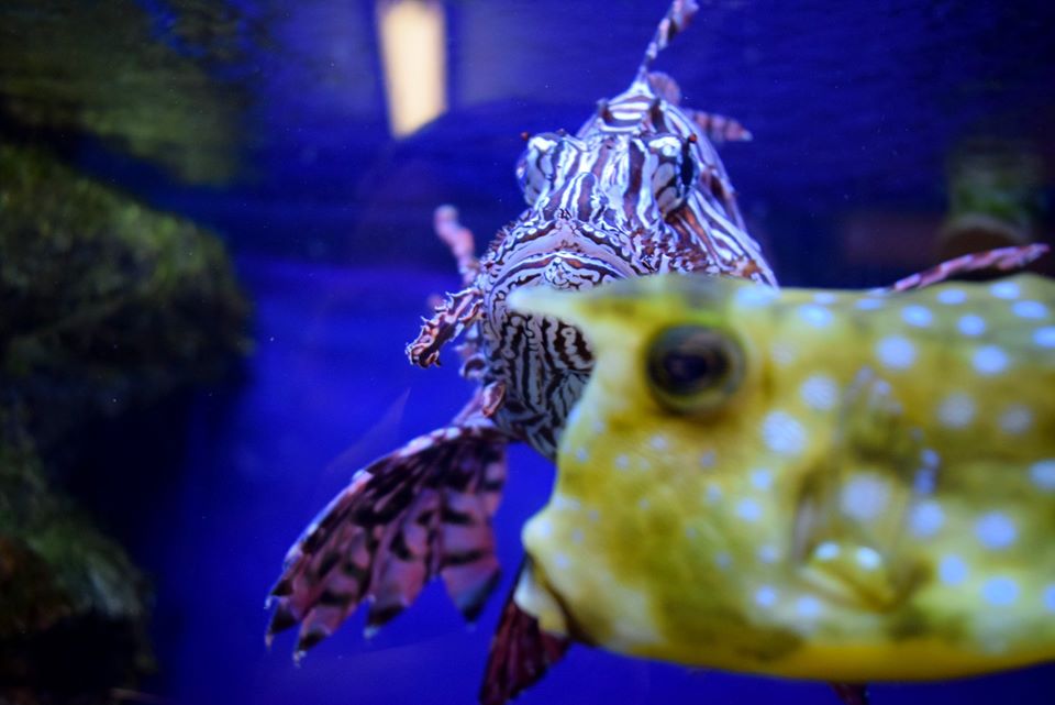 В его залах разместились 50 аквариумов объемом от 50 до 700 л. Более 100 видов рыб из пресных водоемов Африки, Южной Америки, Индонезии, рыбы-эндемики африканских озер Танганьика и Малави. Дискусы, уару, юлидохромисы и другие интересные обитатели водной стихии предстанут взорам посетителей в пресноводных аквариумах. В морском зале представлены уникальные гидробионты: коралловые полипы, морские звезды, ежи и рыбы.