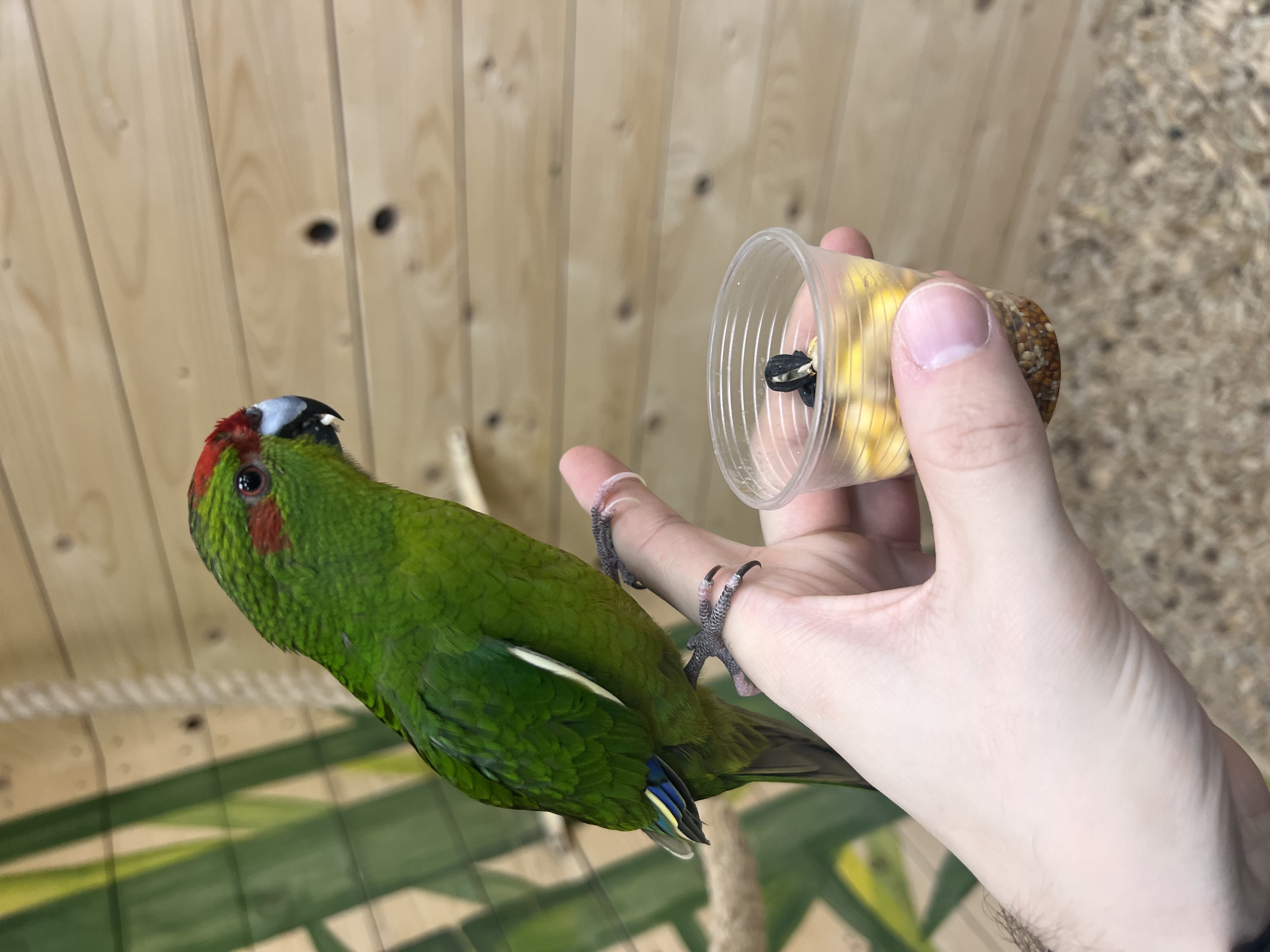 - кормить попугаев можно только специальным кормом, его можно приобрести у администратора