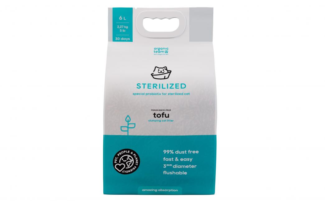 "Organic team Tofu" - комкующийся наполнитель для кошачьего туалета (для стерилизованных кошек)