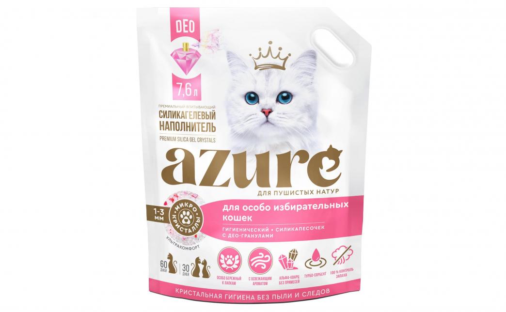"Azure" - впитывающий силикагелевый наполнитель (для избирательных кошек, гигиенический, с део-гранулами)