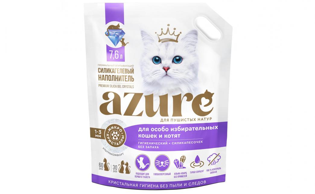 "Azure" - впитывающий силикагелевый наполнитель (для избирательных кошек, гигиенический, без запаха)