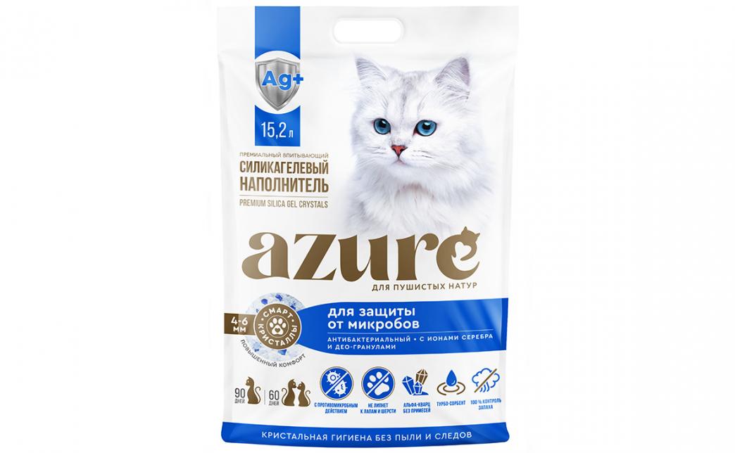 "Azure" - впитывающий силикагелевый наполнитель (антибактериальный, с ионами серебра и део-гранулами)
