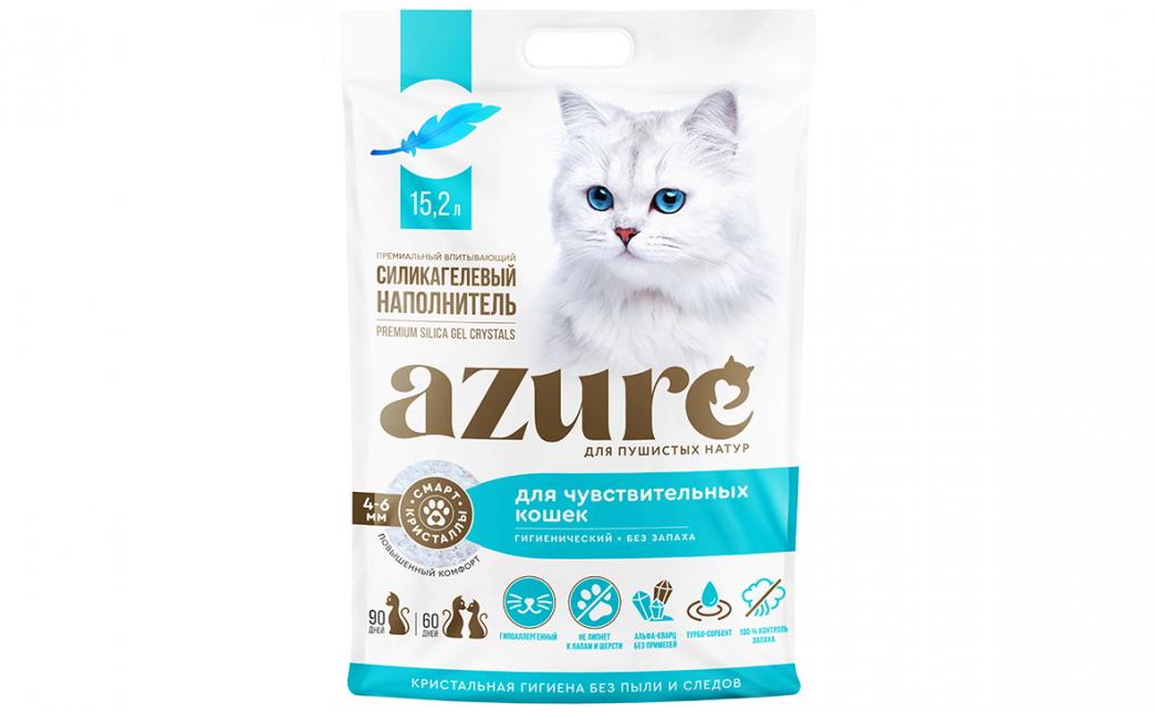 "Azure" - впитывающий силикагелевый наполнитель для чувствительных кошек (гигиенический, без запаха)